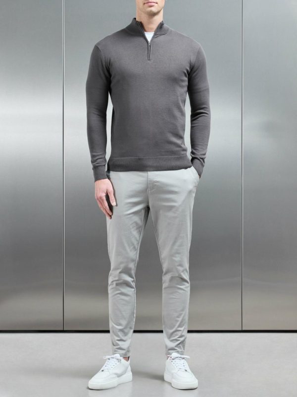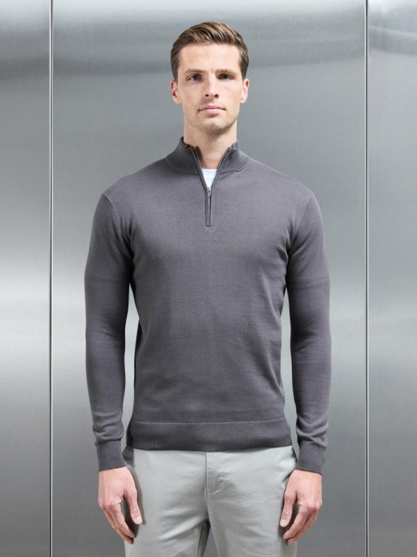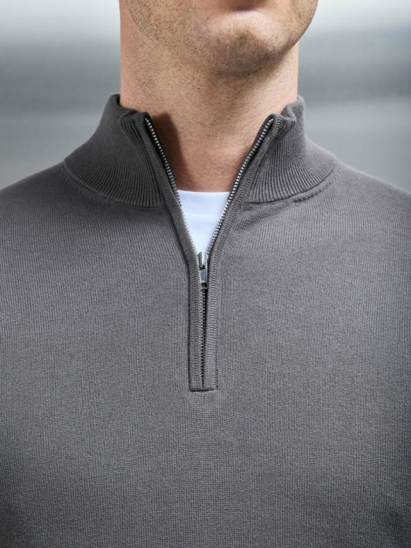 Men ARNE Half Zips | Cotton Knitted Half Zip Funnel Neck Jumper In Charcoal