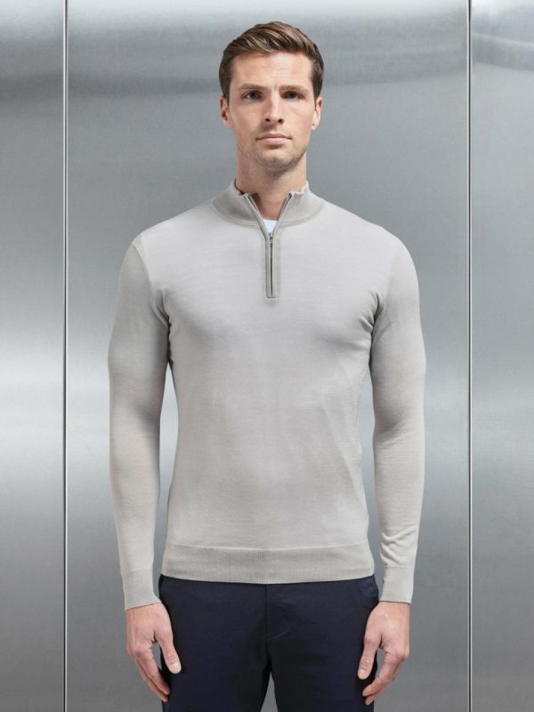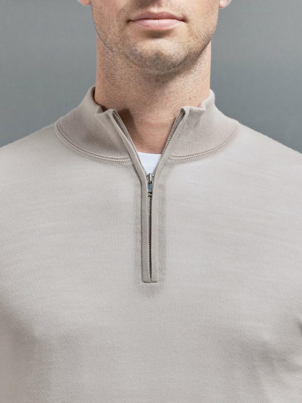 Men ARNE Half Zips | Merino Wool Funnel Neck In Stone
