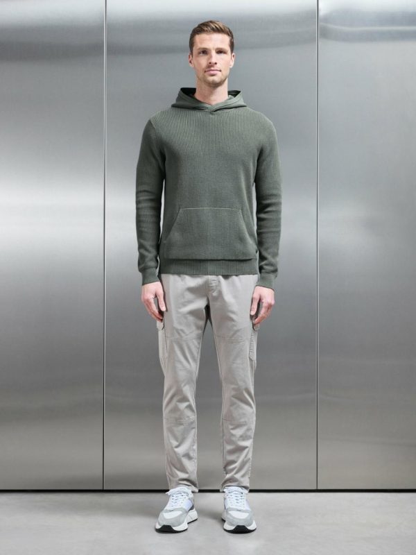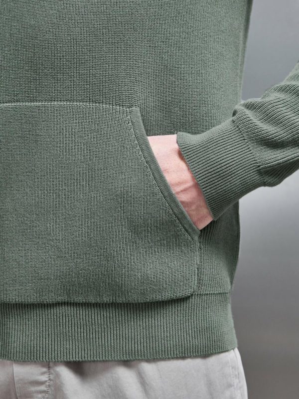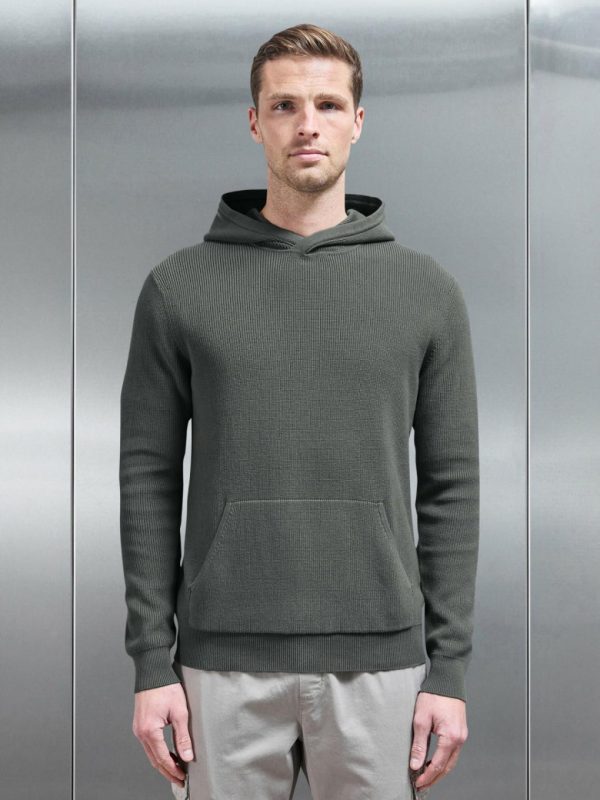 - Slim fit knitted hoodie with wrap over 3 panel hood