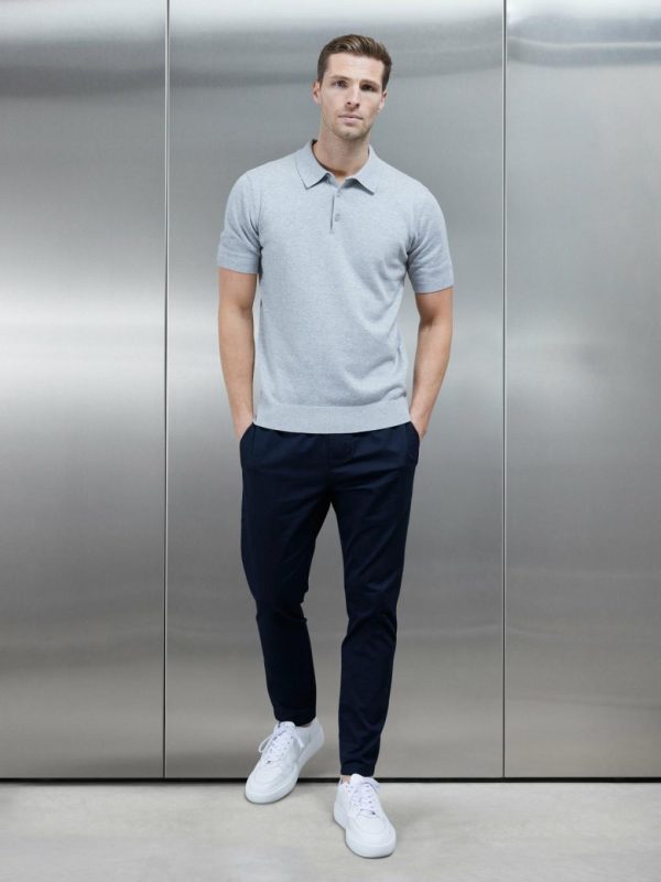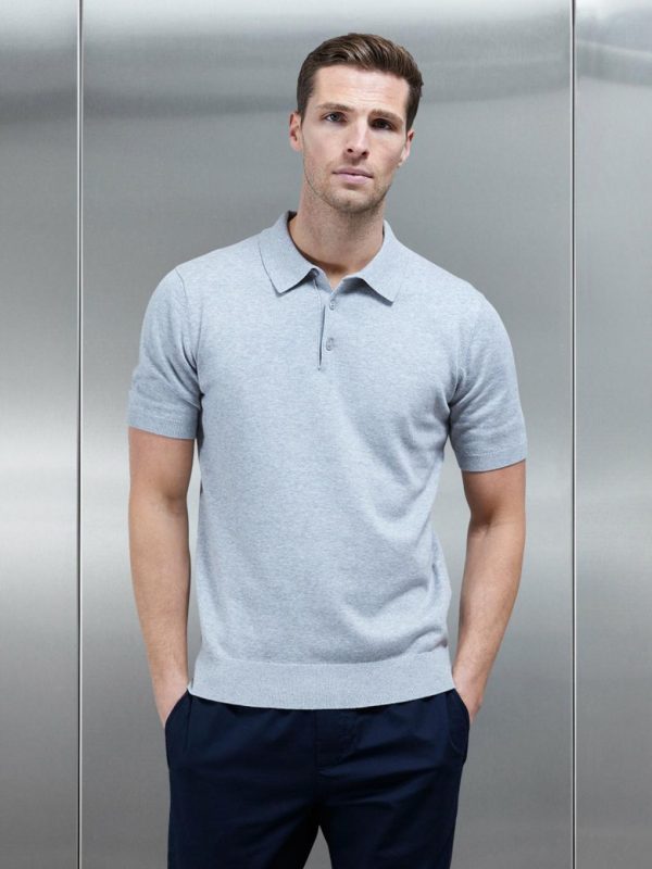 Men ARNE Polo Shirts | Cotton Knitted Button Polo Shirt In Marl Grey