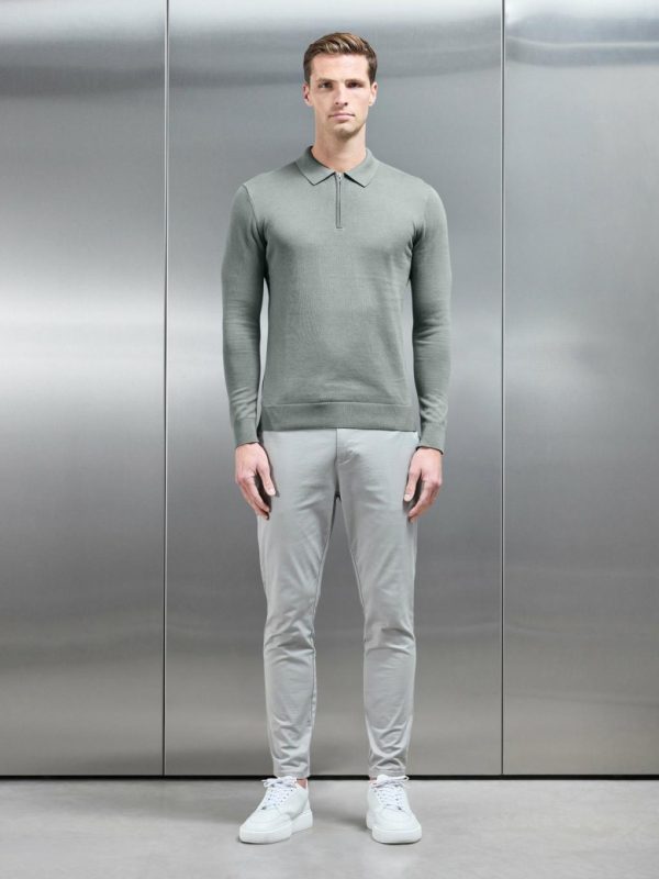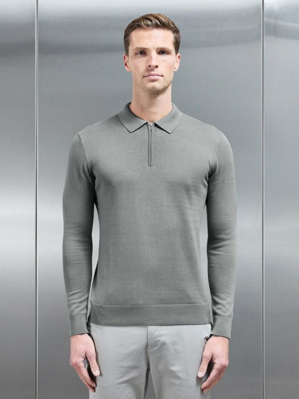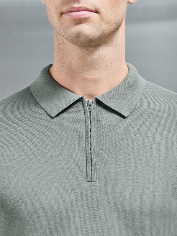 Men ARNE Polo Shirts | Cotton Knitted Long Sleeve Half Zip Polo Shirt In Sage