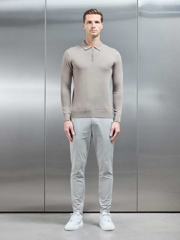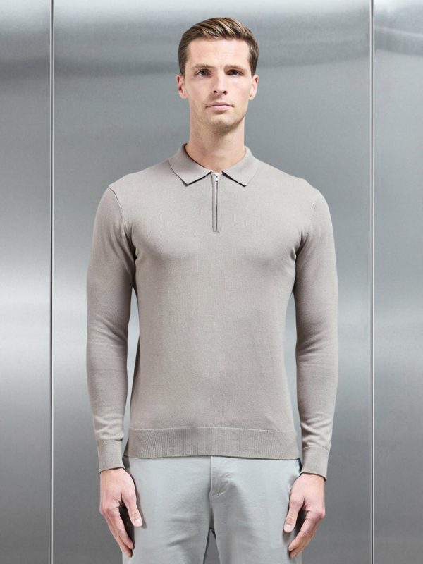 Men ARNE Polo Shirts | Cotton Knitted Long Sleeve Half Zip Polo Shirt In Taupe