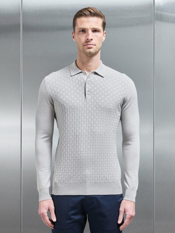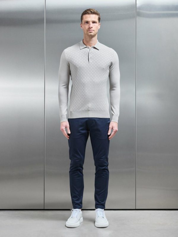 - Slim fit knitted polo shirt with spread collar neckline