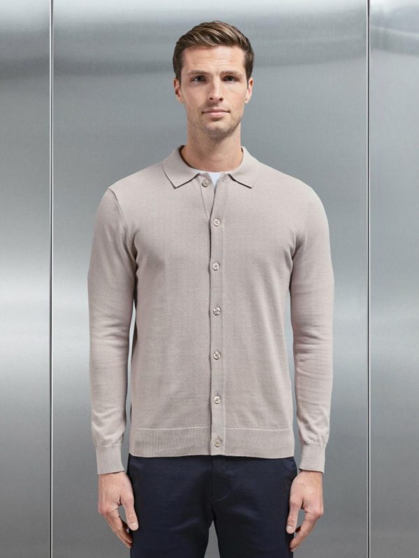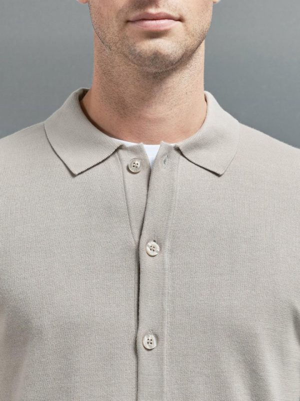 Men ARNE Shirts | Cotton Knitted Button Through Shirt In Stone