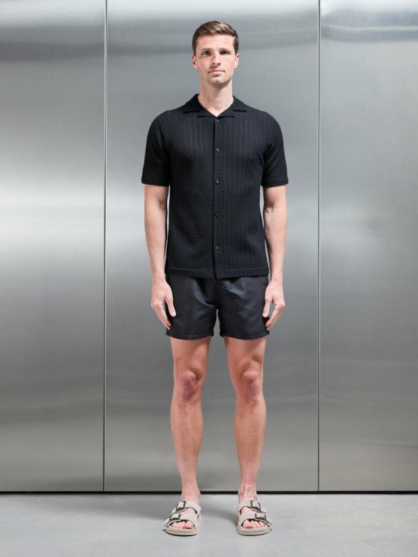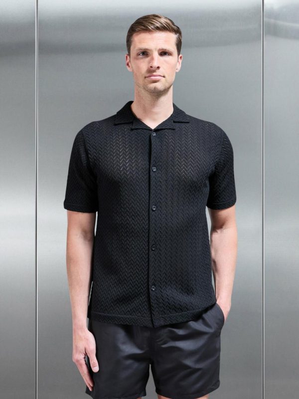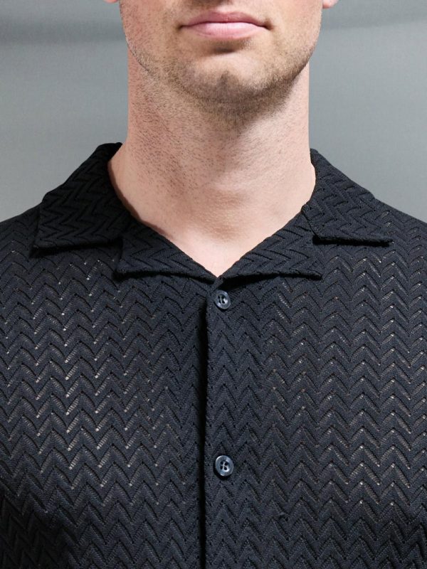 Men ARNE Shirts | Crochet Revere Collar Shirt In Black