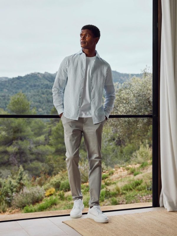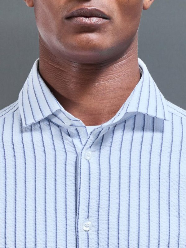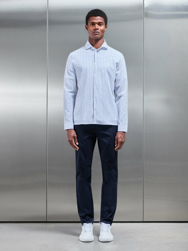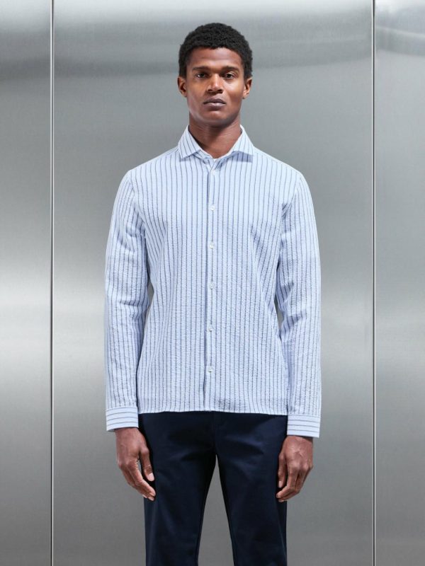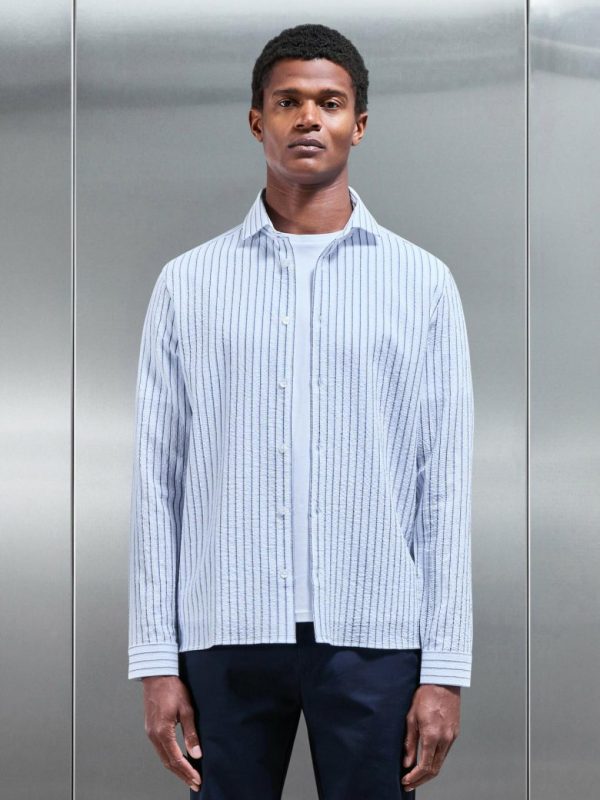 Men ARNE Shirts | Resort Stripe Seersucker Shirt In White