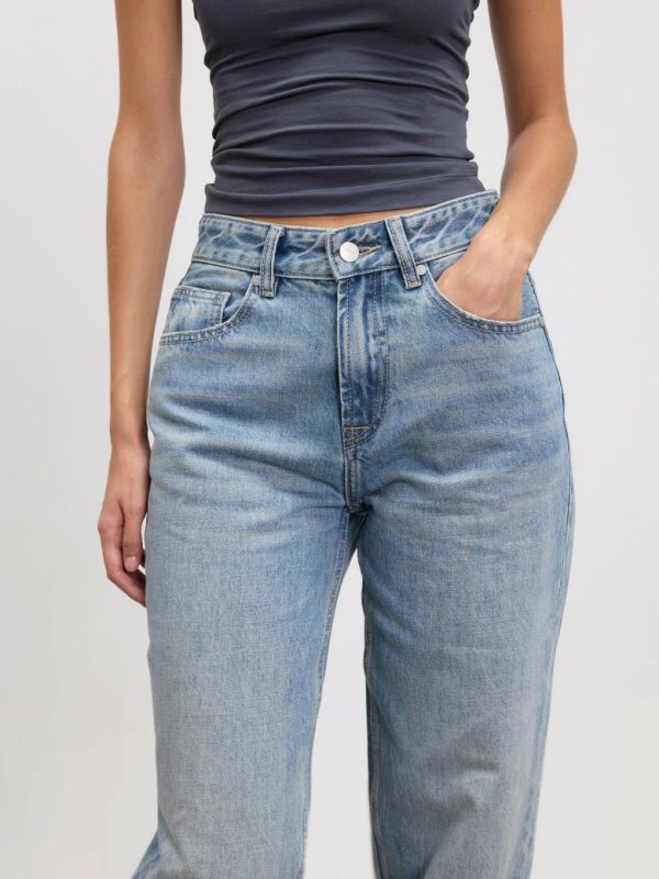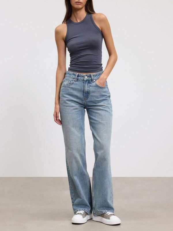 Women ARNE Jeans | Womens Mid Rise Straight Denim Jean In Mid Blue